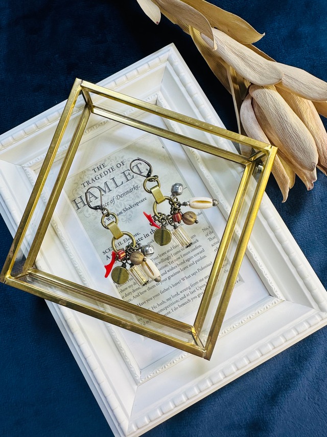 平型のチェコビーズとファルファーレビーズ、民族チャームや銀の鈴を繋げて作ったピアスです。 銀の鈴は、大きな音は鳴りません。 ファルファーレの白いビーズはすりガラスの様な見た目です。 Niフリーのフレンチフックを使用しています。 古金美色が好きな方にオススメです。 長さは、フックから測って約5.6cmとなっています。 写真は実物と同じ色に写る様に心掛けていますが、実物の色が少し違う場合があります。 ご了承下さい。