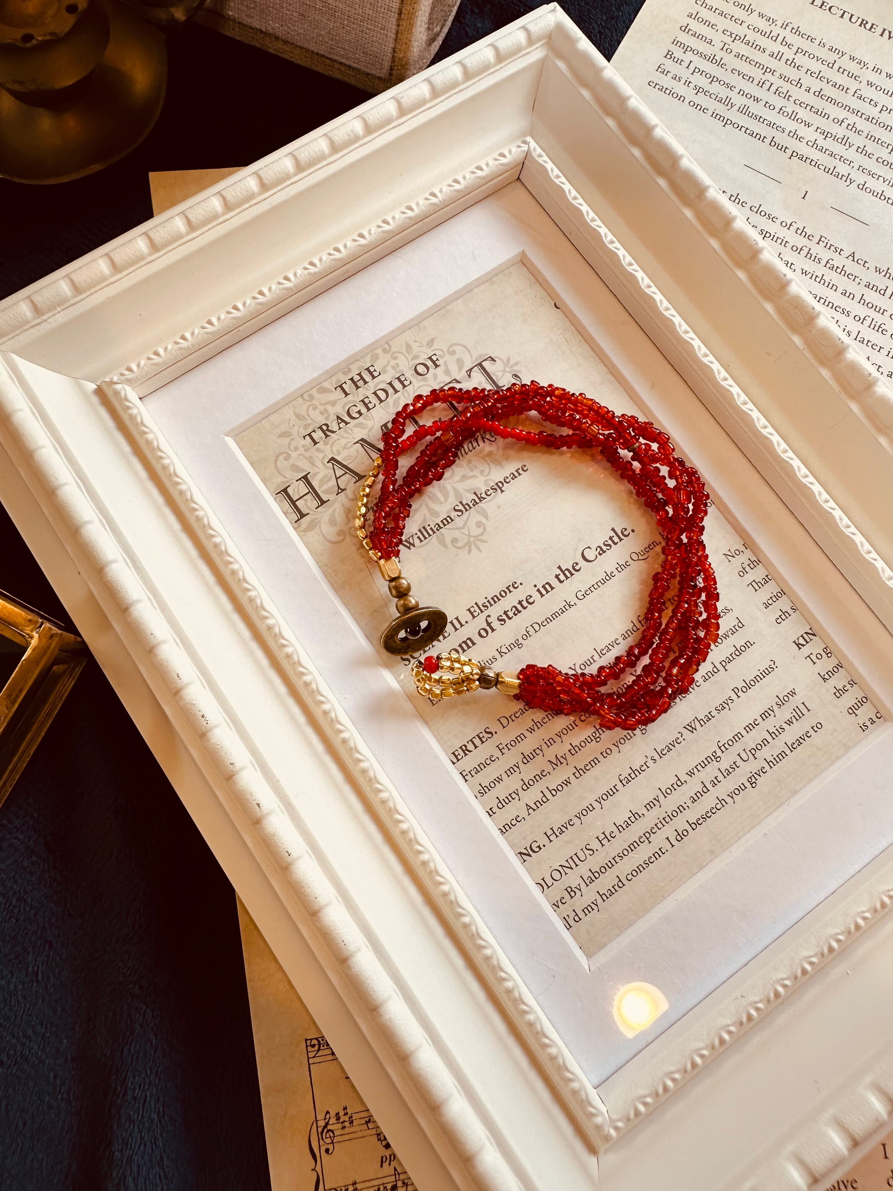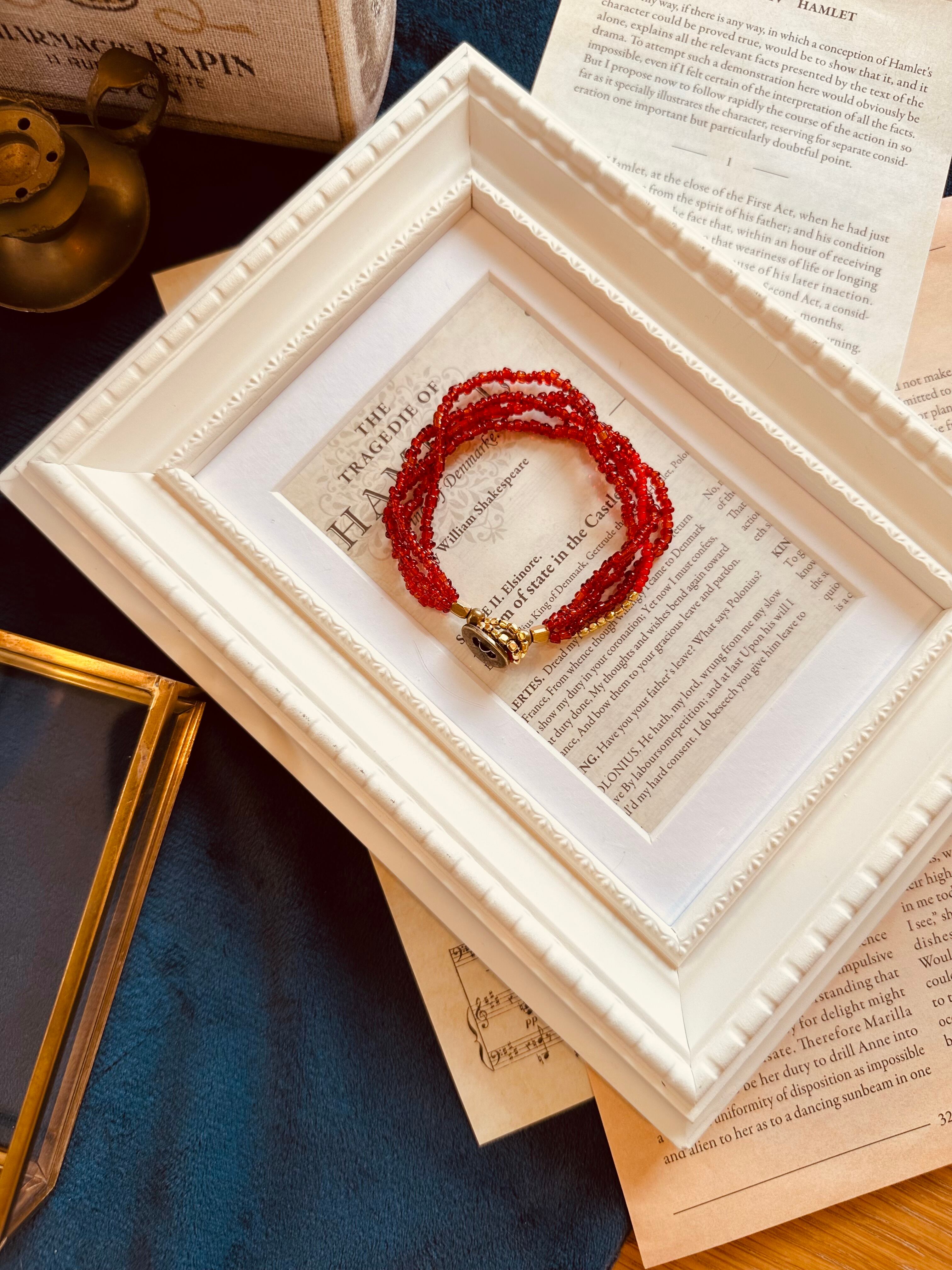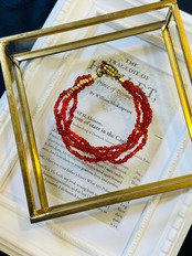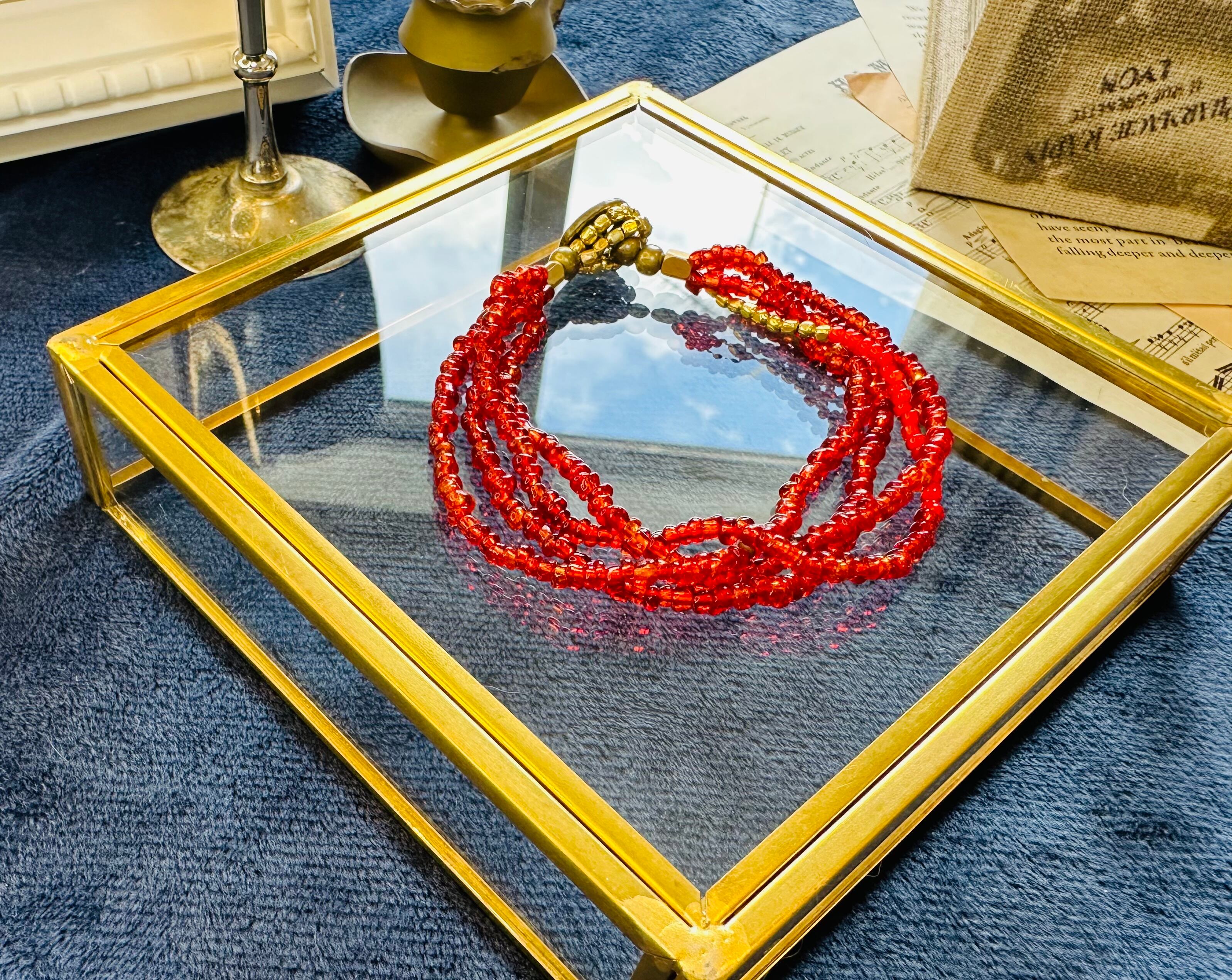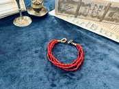 赤いユーズドビーズと真鍮のブレスレット(18cm)