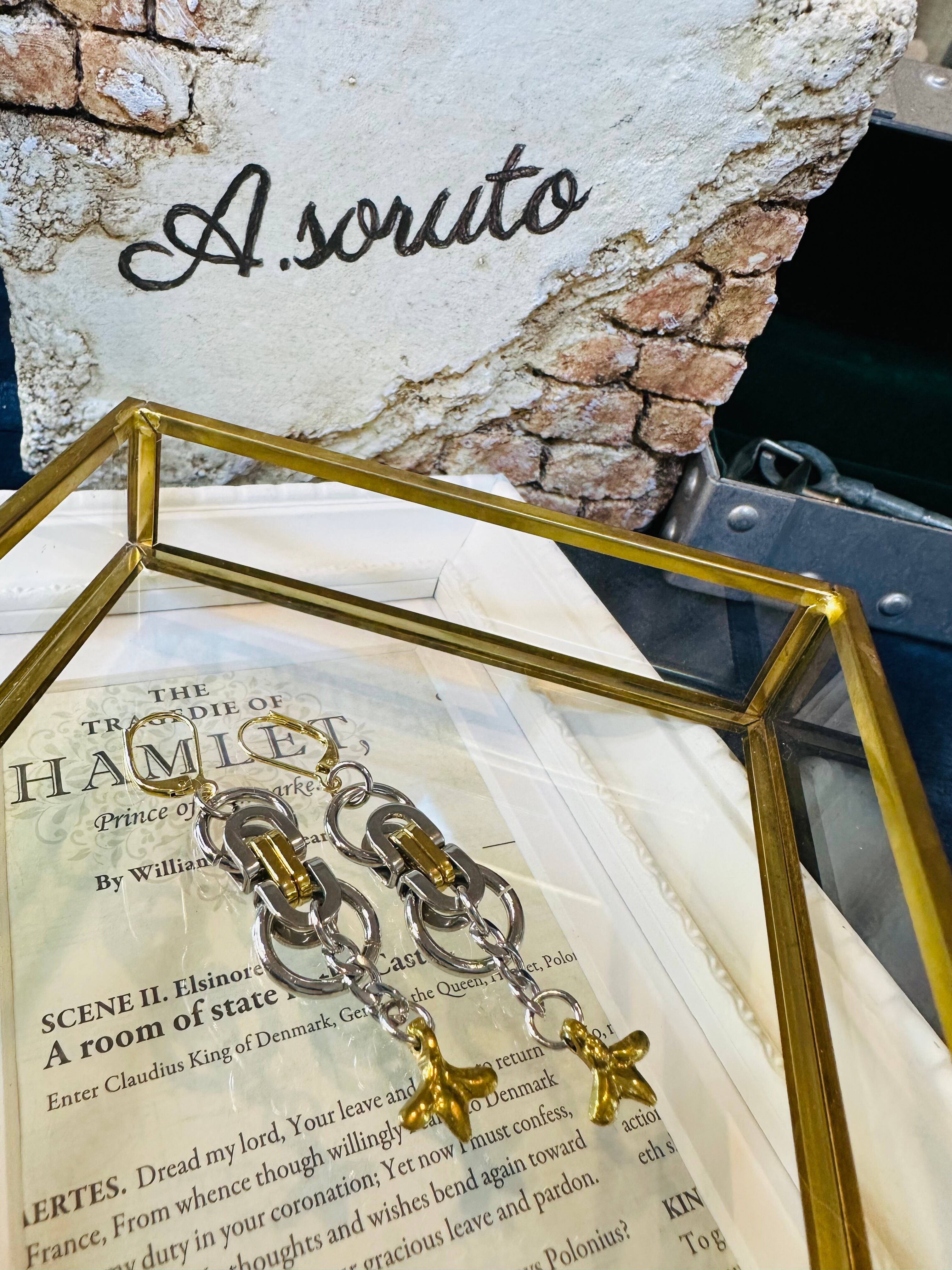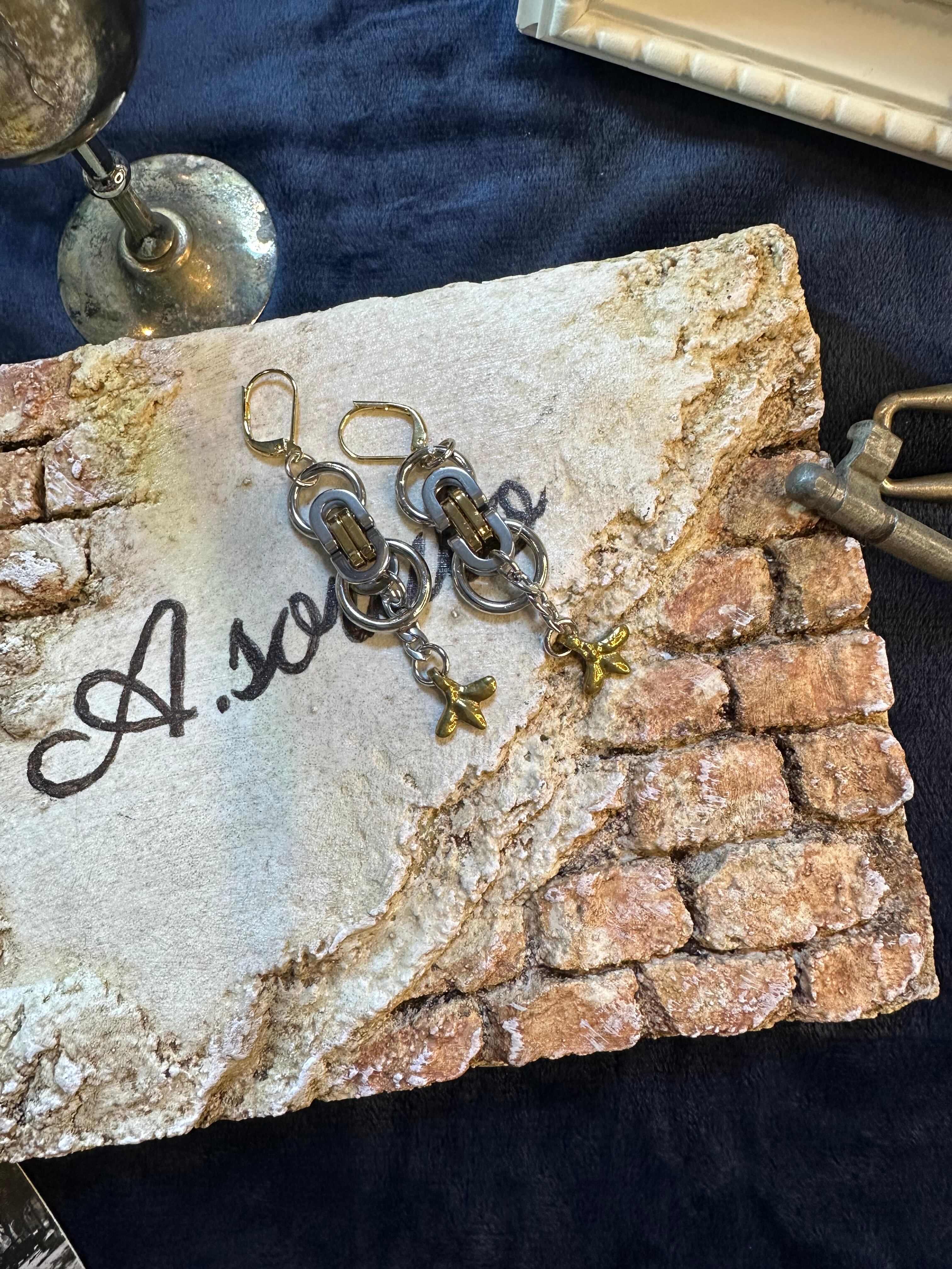 ステンレスチェーンと民族チャームのピアス (約6.5cm)