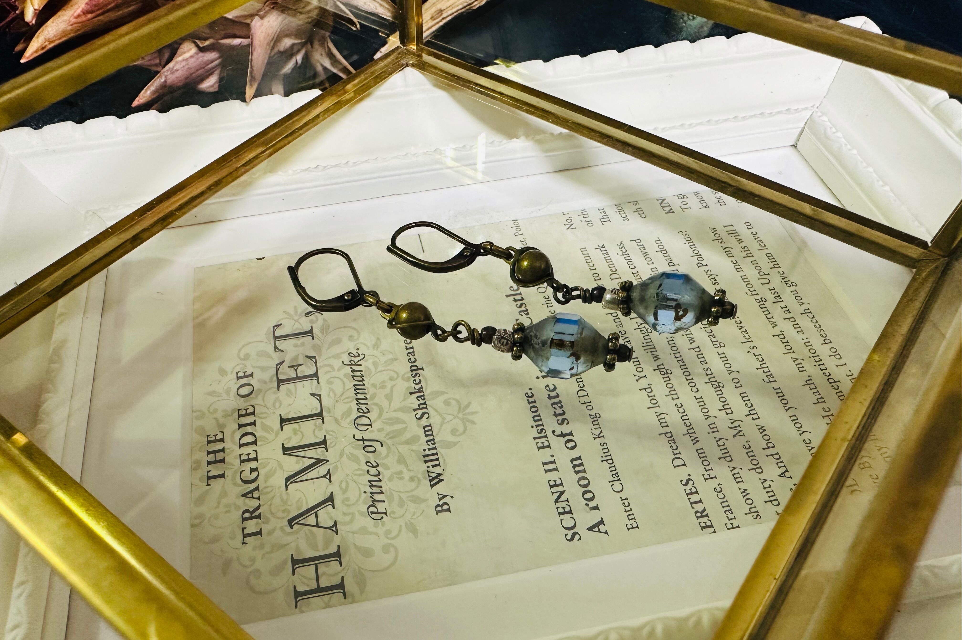ファイアポリッシュビーズとメタル素材のパーツやカレンシルバーを繋げて作ったピアスです。