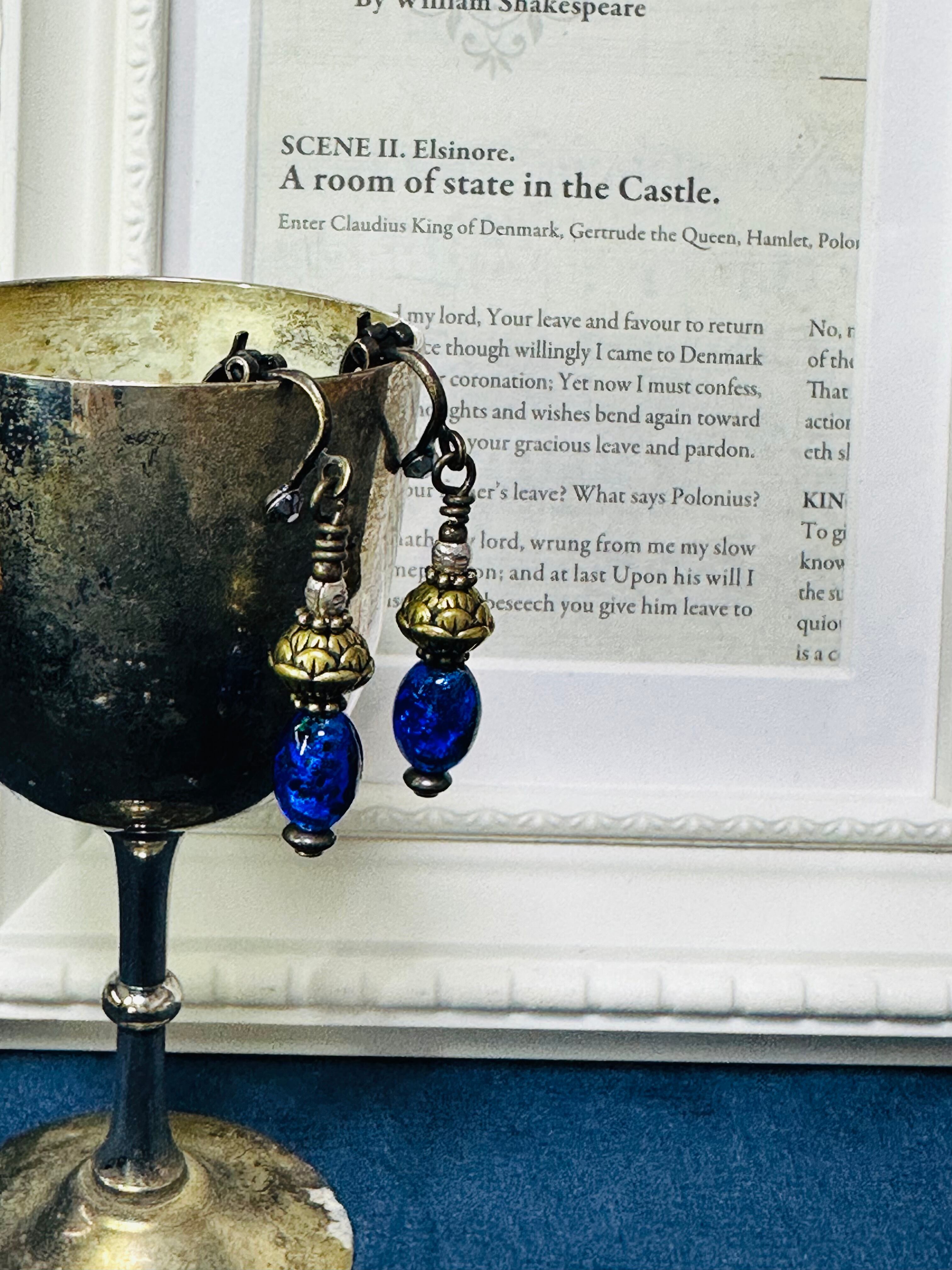 アイヌ玉と蓮のメタルビーズ、カレンシルバーなどを繋げて作ったイヤリングです。