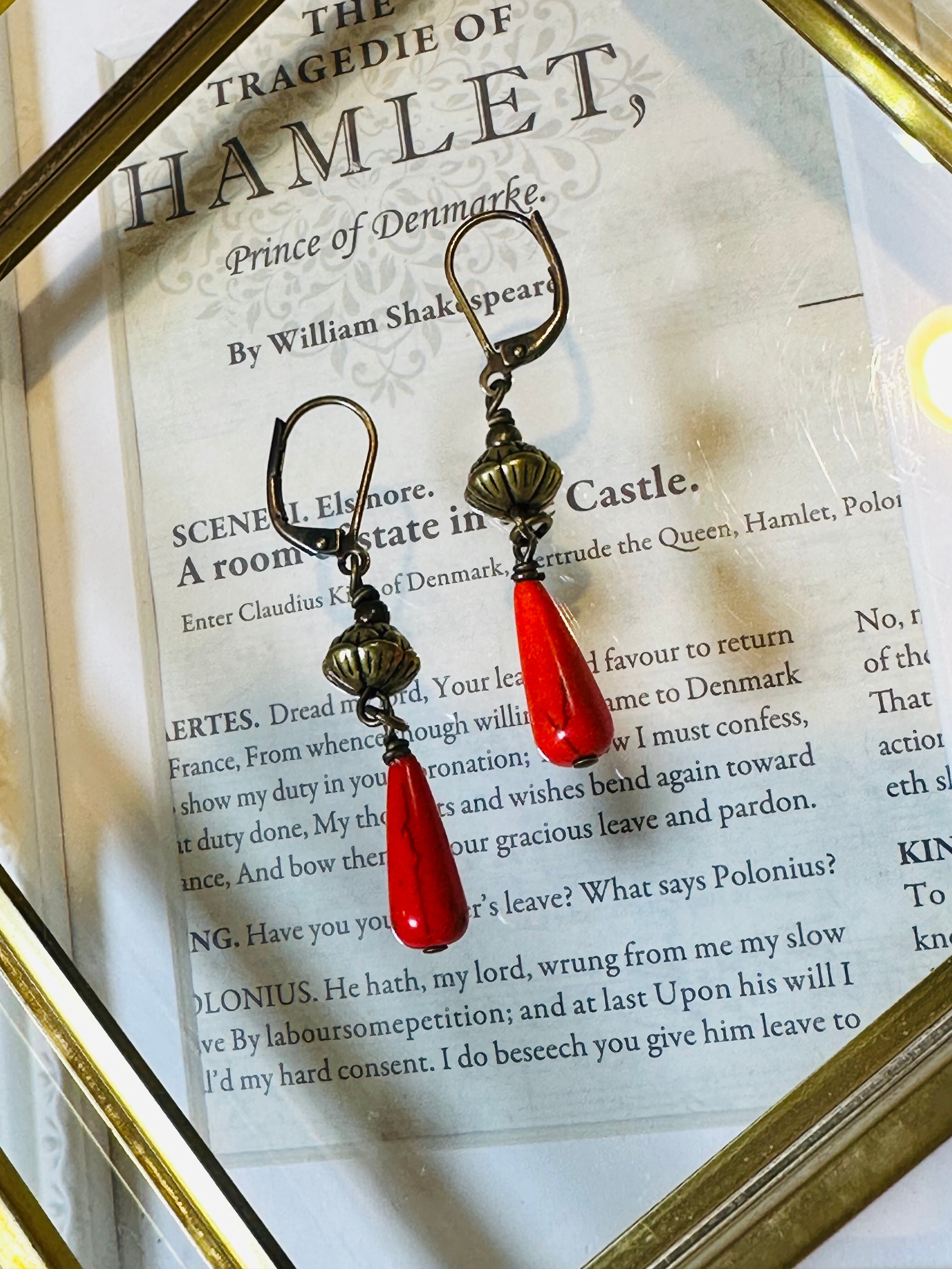 赤い合成ターコイズは、マットな感じの赤い雫形のビーズになります。