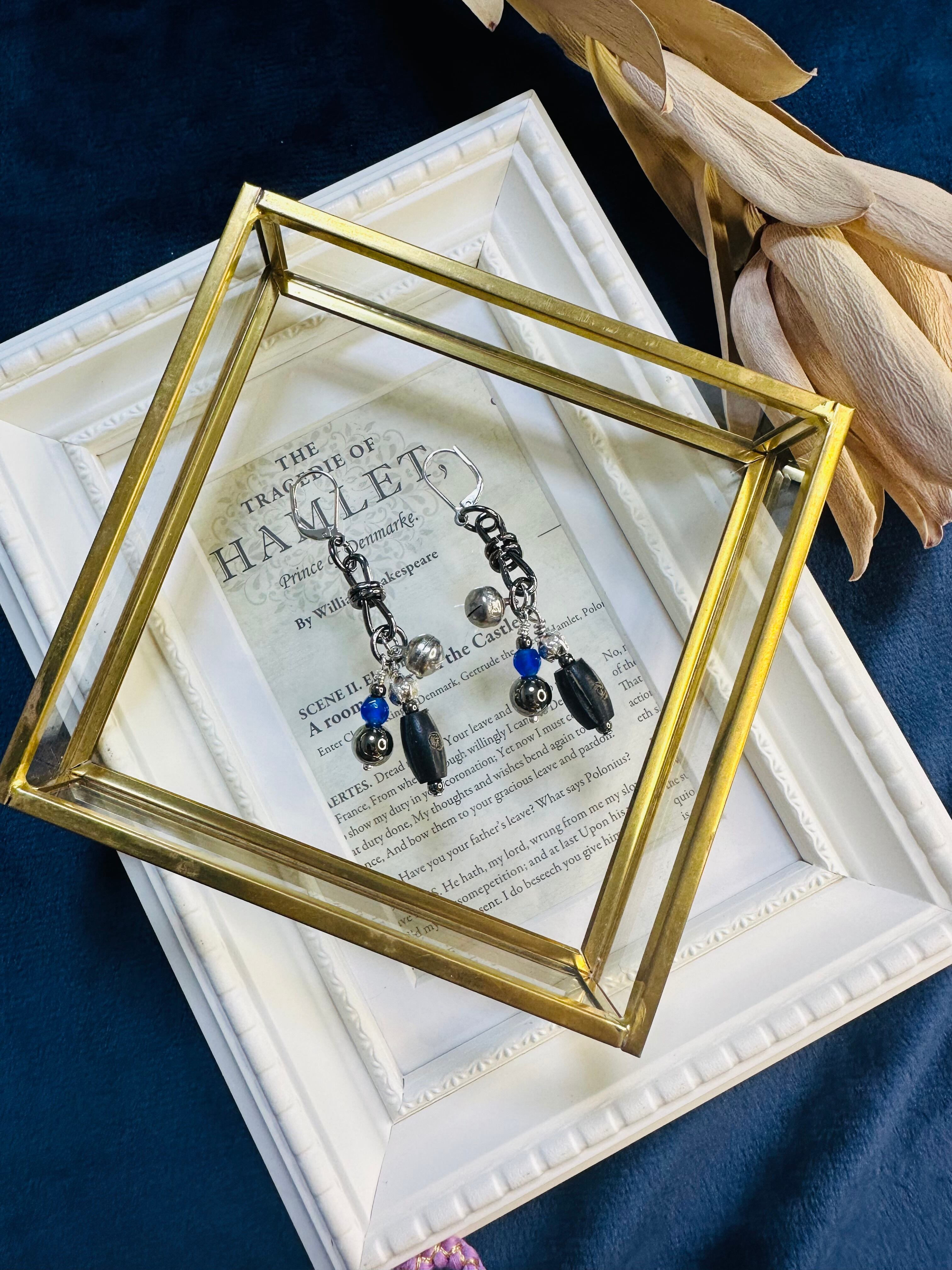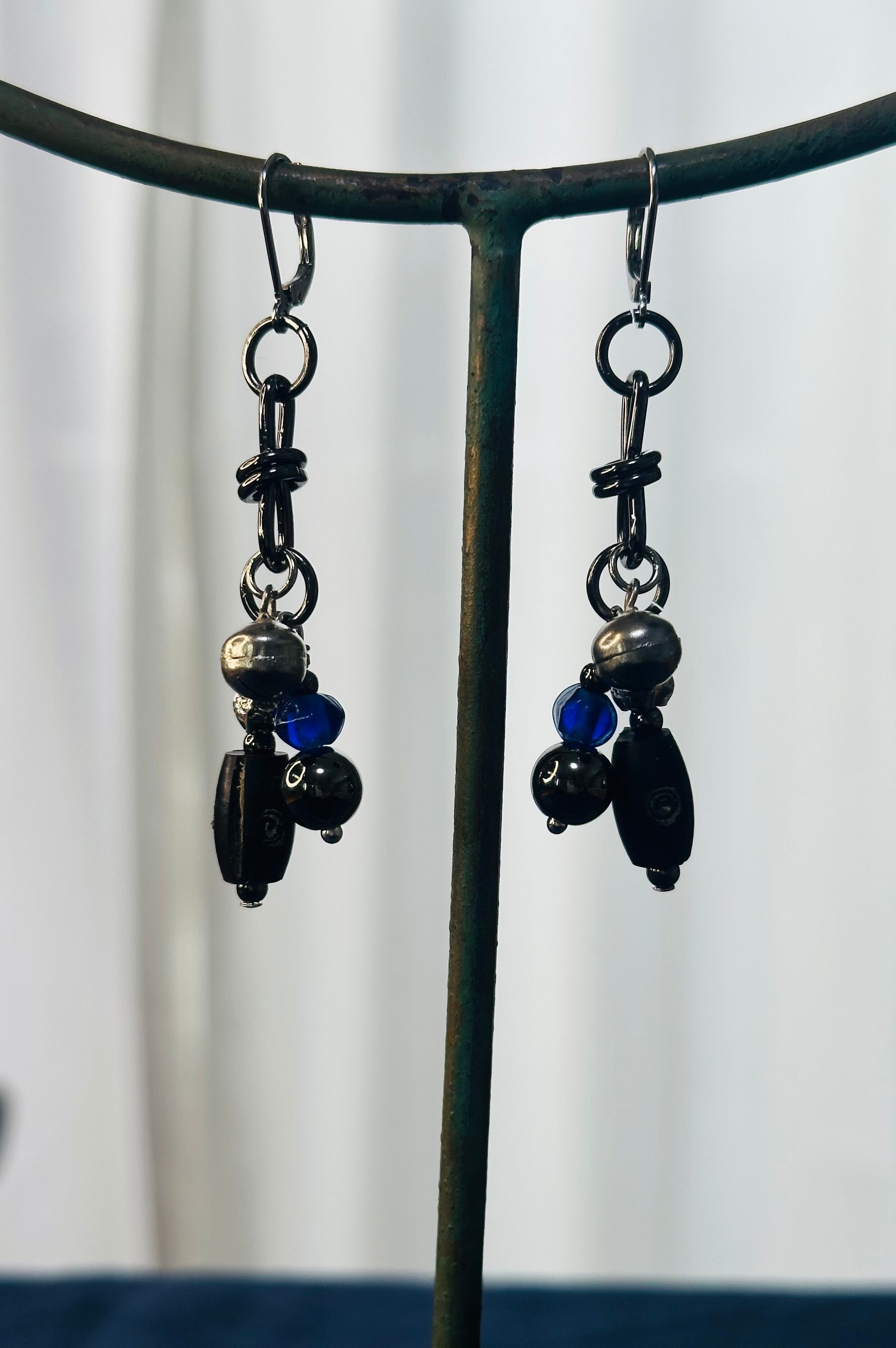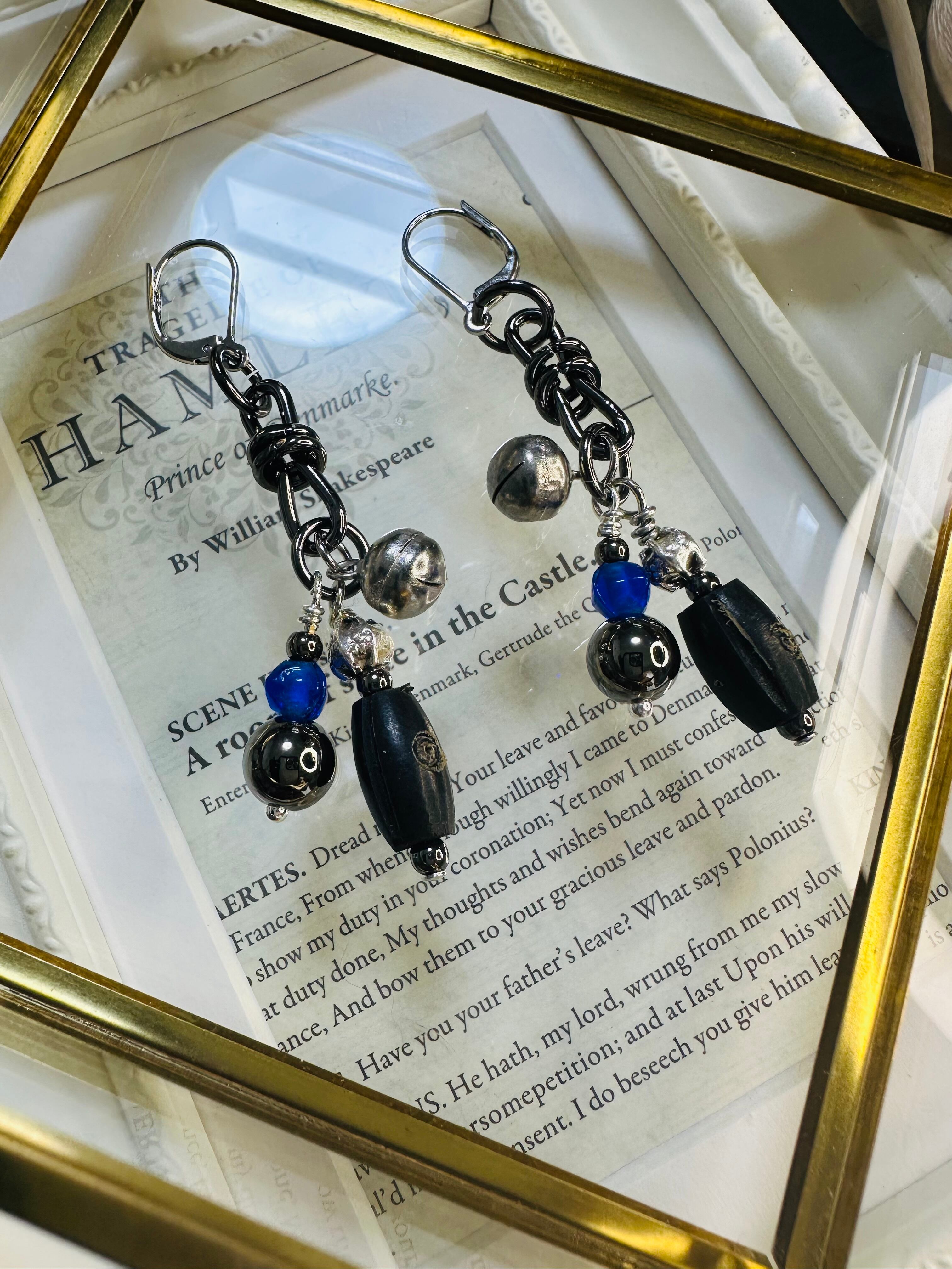 メタルチェーンの一部、カレンシルバー、銀の鈴やボーンビーズ、メタルビーズなどを繋げて作りました。